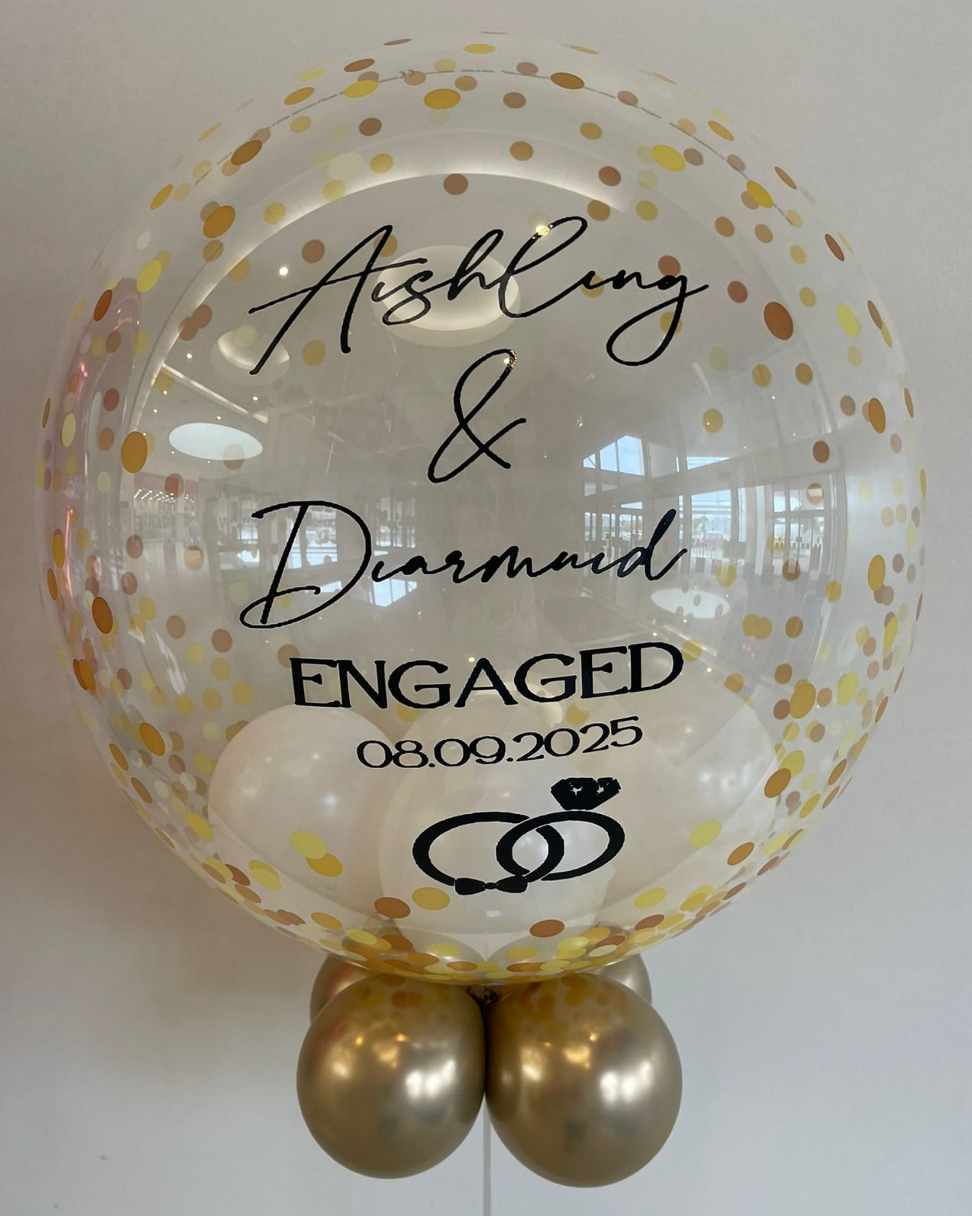 Personalised Gold Confetti Bubble – White Inside, Gold Outside, Black Vinyl